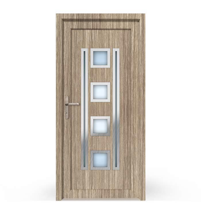 Drzwi wejściowe PVC – bogata gama kolorystyczna profili, praktycznie nieograniczone możliwości konstrukcyjne, możliwość doboru różnych wypełnień. Wysoki stopień bezpieczeństwa i ochrony przed hałasem oraz niekorzystnymi warunkami pogodowymi.