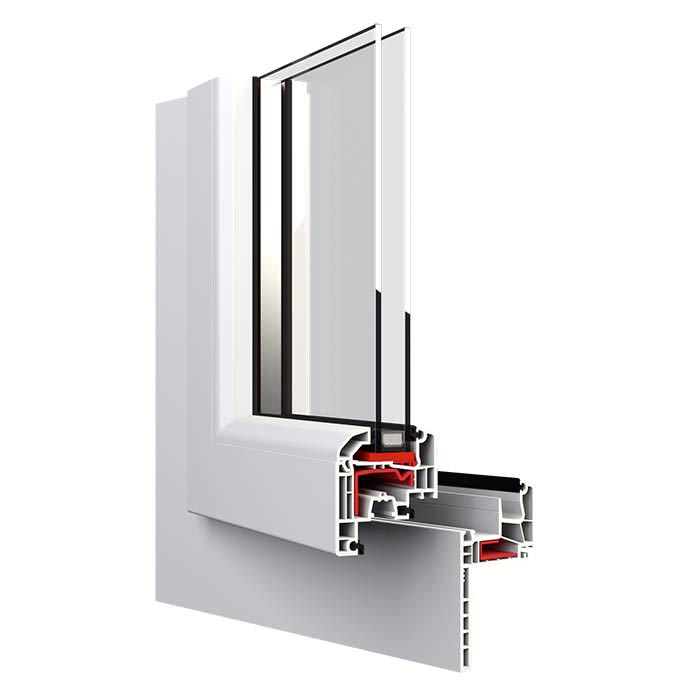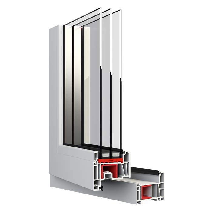 Pięciokomorowy system niemieckiej firmy Salamander. Profile charakteryzują się śnieżnobiałym połyskującym kolorem i dokładnym wykonaniem z wysokiej klasy tworzywa PCV. Ze względu na swoją budowę dają szerokie możliwości szklenia pakietami szybowymi aż do 48 mm grubości. Zastosowane wzmocnienia o wysokich parametrach wytrzymałościowych gwarantują niezmienność kształtu okien i bezawaryjne, długoletnie ich działanie.