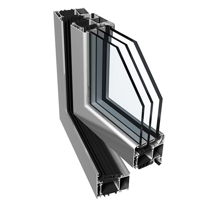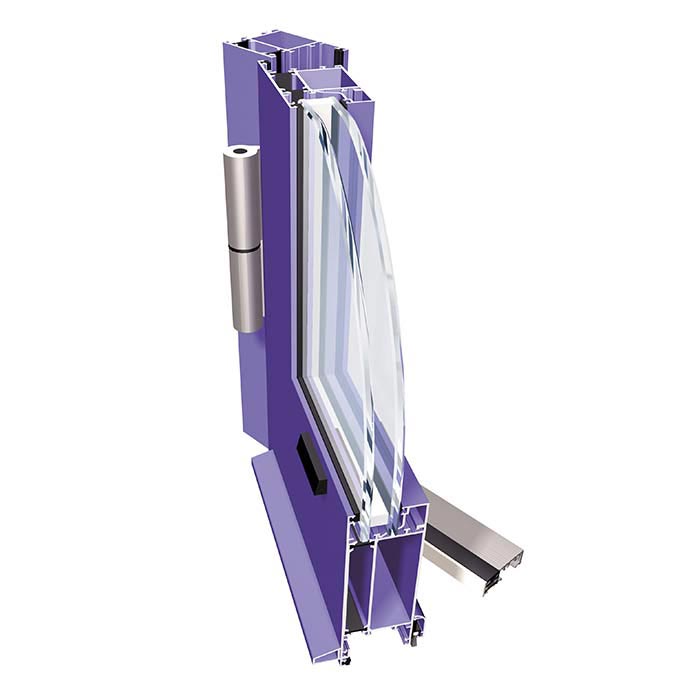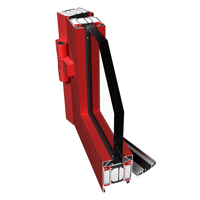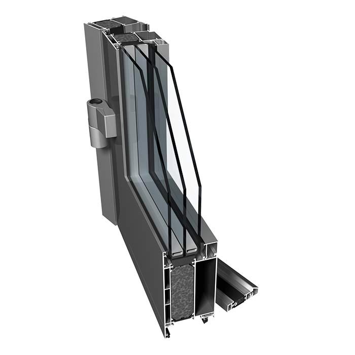 Trzykomorowy system izolowany termicznie przeznaczony do wykonywania konstrukcji drzwiowych. System posiada konstrukcję profili współpłaszczyznowych (luz wrębowy wynosi 18mm) oraz możliwość zastosowania listew przyszybowych do rowka w standardzie euro.
